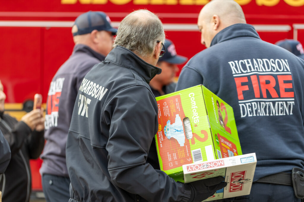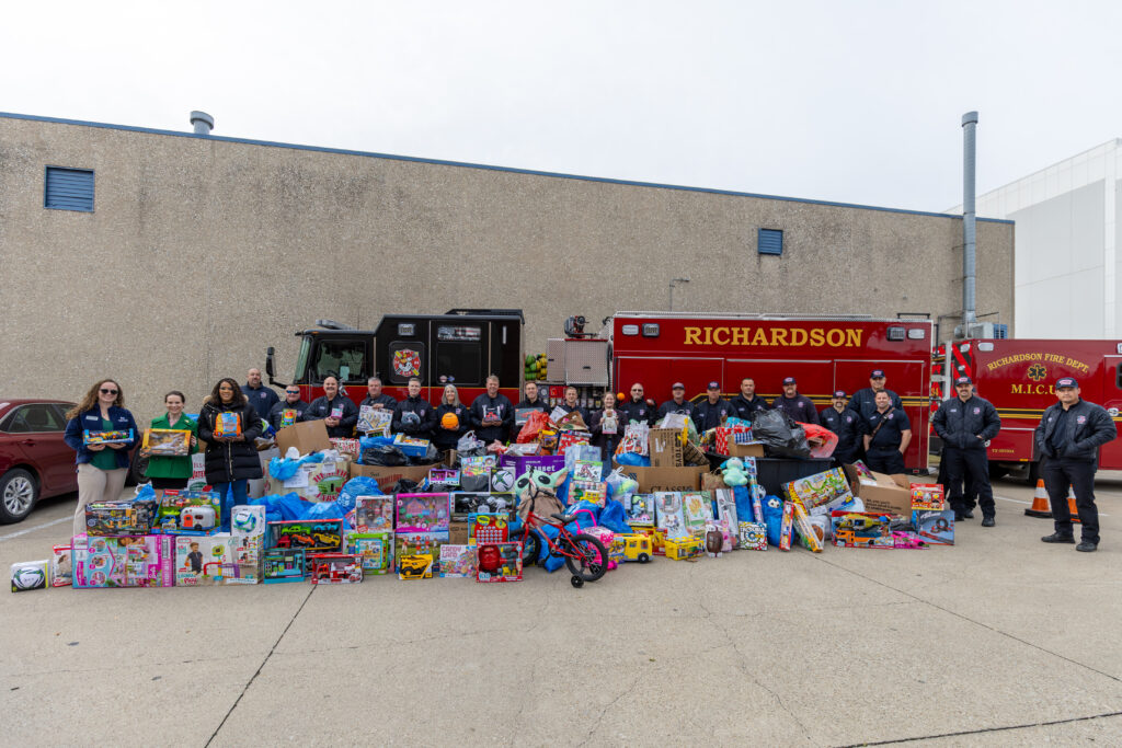 On Dec. 16, Richardson firefighters delivered 1,640 unwrapped toys and 422 pounds of food to Network of Community Ministries. The items were collected as part of RFD’s annual toy and food drive benefiting Network’s Toyland Express program, which helps low-income families provide toys for their children during the holiday season, as well as Network’s food pantry and clothing closet, which have been assisting the community more than ever before. Donations can be made throughout the year at Network, located at 1500 International Parkway, in Richardson, or online at www.thenetwork.org.
